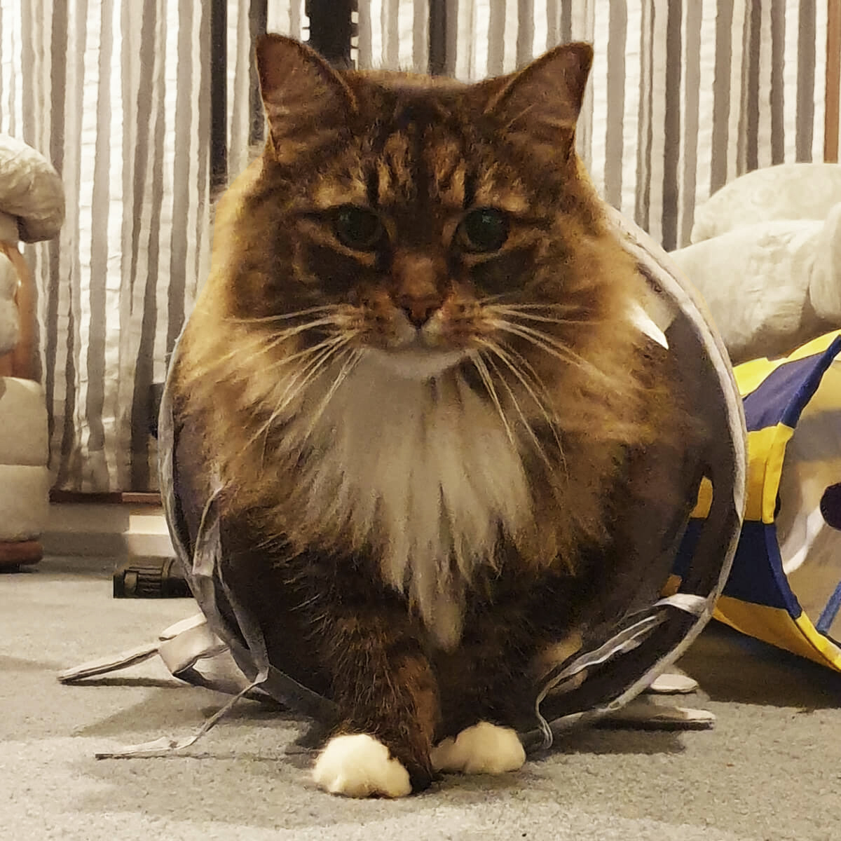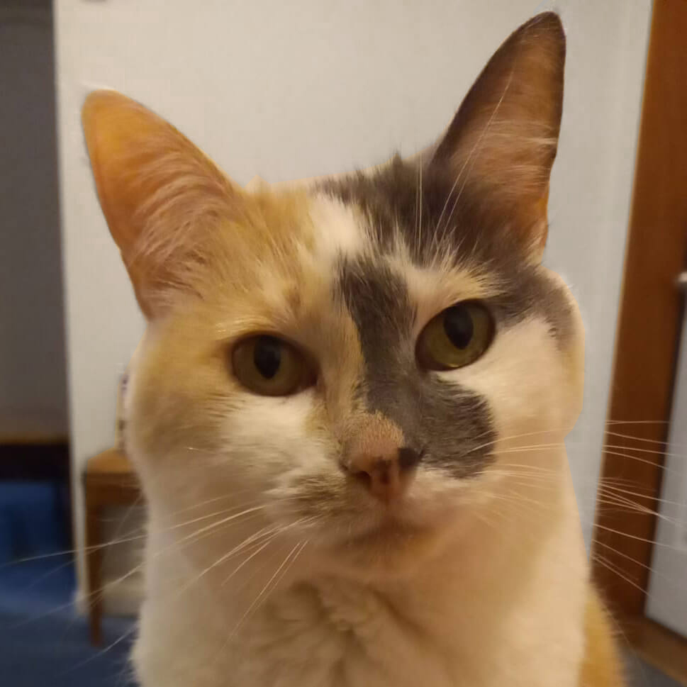 You can usually find Minty underneath the heat pump in various poses. One of the gentlest souls in the world but can be lazy during work hours..